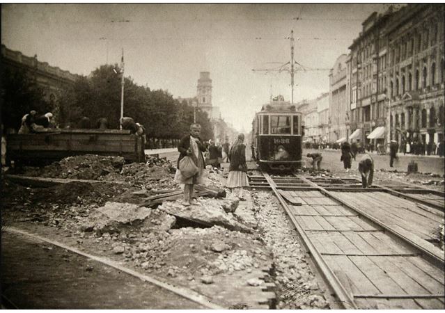 Петроград 100 лет назад. Ремонт трамвайных путей |
