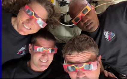 Безопасность превыше всего! На снимках астронавты миссии «Артемида II» запечатлены в защитных очках, которые они надели 6 апреля, чтобы защитить глаза от солнечного затмения. Солнце, Луна и космический корабль «Орион» выстроились в одну линию — и лунная радость была обеспечена!
