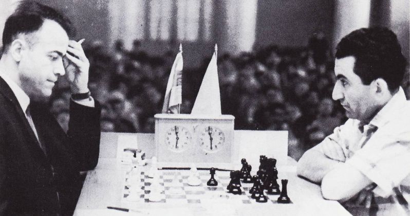 Тигран Петросян анализирует партию вместе с Паулем Кересом, а Оскар Пanno наблюдает.
