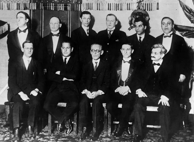 Гроссмейстерский турнир Нью-Йорк 1924: первый из двух крупных шахматных турниров, состоявшихся в Нью-Йорке. Участники (слева направо), стоя: Фрэнк Маршалл, Савелий Тартаковер, Геза Мароци, Александр Алехин, Рихард Рети, Ефим Боголюбов; сидя: Фредерик Йейтс, Хосе-Рауль Капабланка, Давид Яновский, Эдвард и Эмануил Ласкер.