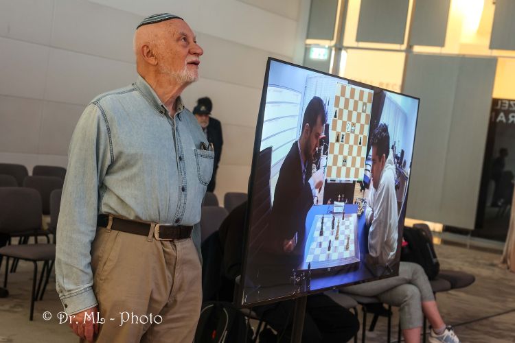 Чемпион СССР (1977), чемпион США (1994, 1999) гроссмейстер Борис Францевич Гулько в комментаторском зале турнира "Jerusalem Masters 2025". |