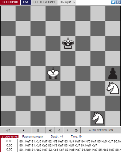 Более всего меня потрясла его практически (а может, и фактически) расписная ничья белым цветом с Каруаной - при том, что Фаби лидировал, а Уэсли отставал на пол-очка. Это уже полный привет.