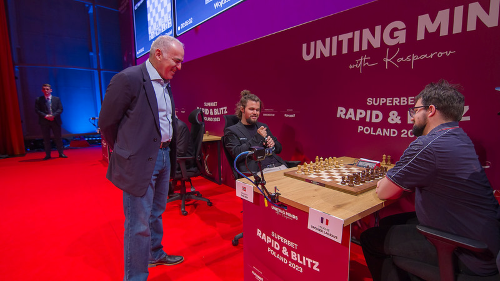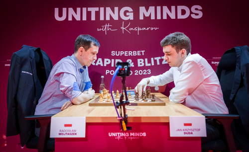 Все о турнире Варшава Superbet Rapid & Blitz Онлайн-трансляция, 4-6 туры Положение после 6 туров. 1-2. Со, Дуда - по 9; 3. Аронян - 8; 4. Вашье-Лаграв - 7; 5-6. Войташек, Раппорт - по 6; 7. Карлсен - 5; 8. Дяк - 4; 9-10. Гири, Шевченко - по 3