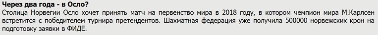 BREAKING: Oslo officially announcing that they want to host @MagnusCarlsen's WC match in 2018. Meetings today
