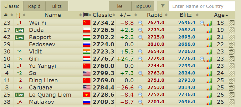 Видит очень неплохо смотрится среди тех, кто в 2700+ младше Карлсена