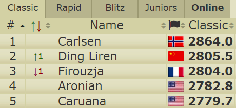 Кубок Америки, "промежуточные итоги". Со и Аронян вывели Раппорта на 4-ую позицию в лайв-рейтинге. Если Каруана ещё постарается (осталось совсем немного), то Раппорт станет no.3 в мире |