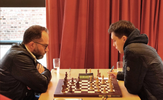 | Нихал Сарин играет за HSK на первой доске, он постоянно ходит по турнирному залу. Когда я спросил его...он позже подтвердил мое предположение, что замерзает и таким образом немного согревается. |