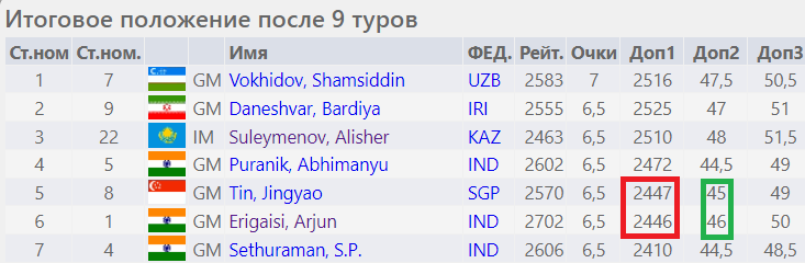 А точно выходит в Кубок мира лидер турнира - Ш.Вохидов (из "золотого" состава олимпиадной сб. Узбекистана). Именно ему в чемпионате Азии прошлого года не повезло стать первым невыходящим (у него с четвертым выходящим оказались равные СРО, но подвел второй доп - Бухгольц).