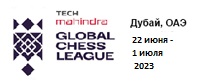Все о турнире Global Chess League Онлайн-трансляция, 1 тур Результаты 1 тура. Triveni Continental Kings - UpGrad Mumba Masters 8:7, Ganges Grandmasters - Chingari Gulf Titans 10:4,