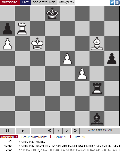 Каймер и Ле Куанг Льем пропустили мат в 2 хода с 50 минутами на часах (47 ход). |