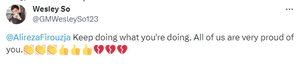 To everyone who is comparing Chennai tournament to Alireza’s race to candidate, please note that Wesley and Anish both were invited to Chennai Grand Masters tournament. Wesley had to decline because of CCT Finals. My guess for Anish would be he didn’t want to increase TAR of tournament.