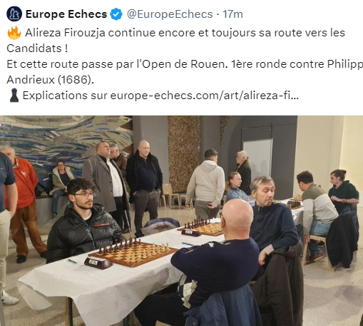 Firouzja is still fighting for the Candidates spot — playing an Open in Rouen. This is a battle that could well end up in the Court of Arbitration for Sport in Lausanne!