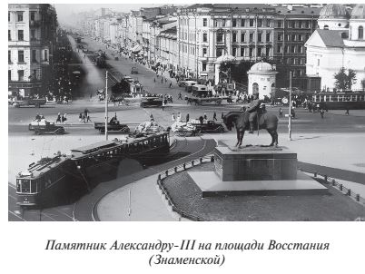 Мой ежедневный 10-минутный путь в школу преодолевал три «восстания» — шел по Невскому до станции метро «Площадь Восстания», стоящей на углу одноименной площади, и поворачивал на улицу Восстания, где и находилась моя школа. До 1937 г. в центре площади стоял памятник Александру III (скульптор П.П. Трубецкой) — весьма грузный император на грузном коне. В 1937 г. памятник был демонтирован, и его перевезли во двор Русского музея. В 1994 г. памятник установлен в парадном дворе Мраморного дворца.
