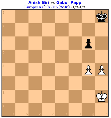 Почитатель: В заключение Аниш (эло 2700+ с огромным стажем, и с большим "плюсом", ближе к 2800) приводит "позицию с тремя пешками", которую сам не выиграл.