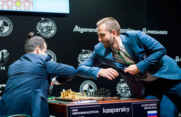 Теннисисты стукаются ракетками, может по аналогии стукнуть шахматной доской?