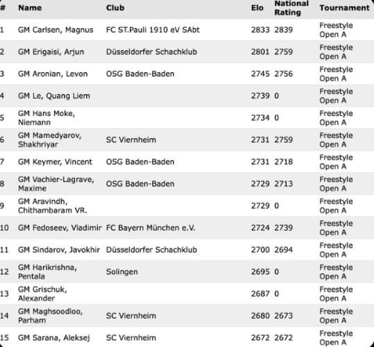 Список зарегистрированных игроков на grenke FreestyleChess Open (17-21 апреля в Карлсруэ, Германия) уже впечатляет!
