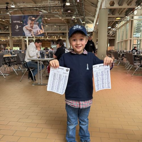 Незабываемый подарок на день рождения: 6-летний Даниэль, участвующий в турнире C-Open вместе со своим братом, с гордостью держит протоколы игры между @Magnus Carlsenи Мамедов.