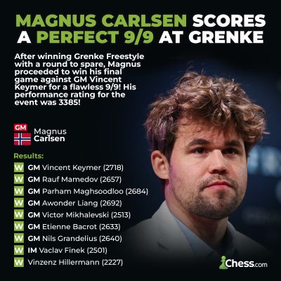 Самый поразительный аспект результата Карлсена 9 из 9 — в том, что он сумел добиться этого, играя по две партии в день.