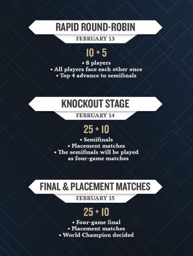 И ещё, кстати, вопрос: почему чемпионат с контролем времени 25+10 называется не "чемпионатом мира по быстрым фристайл-шахматам", а просто "чемпионатом мира по фристайл-шахматам"?