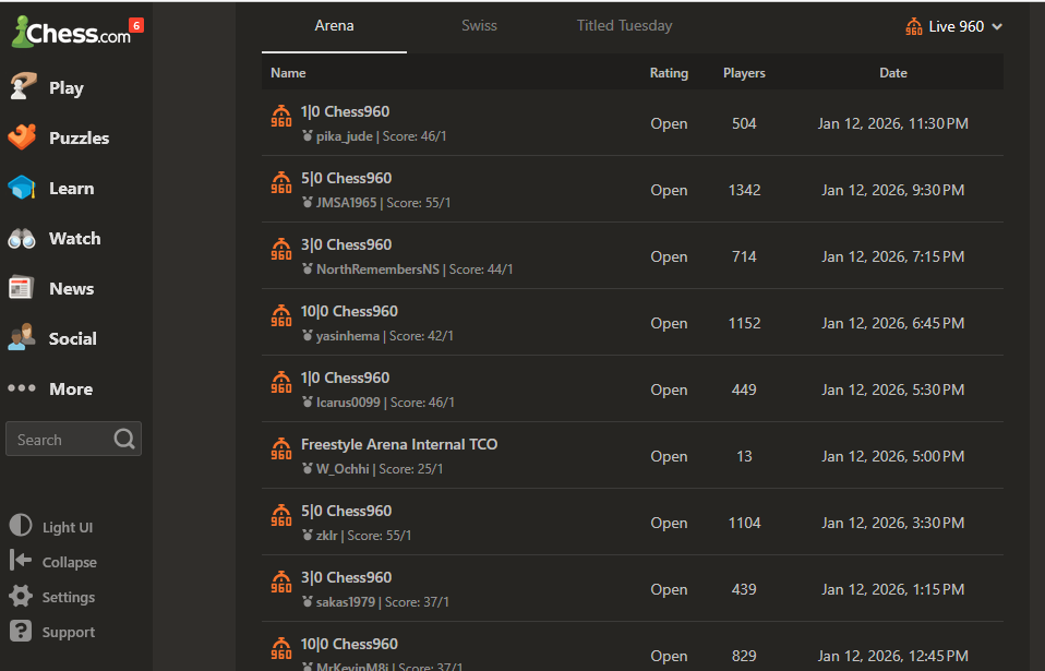 А как насчёт чесскома, с 500-1500+ участниками массовых турниров, проходящих по несколько раз в день с разными контролями? Неудобную инфу игнорируем, в лучших демагогических традициях?