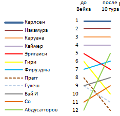 Эригайси сыграет с Синдаровым (11-й раунд), ван Форестом (12-й раунд) и Абдусатторовым (13-й раунд), так что в последних трёх раундах он сыграет со всеми лидерами турнирной таблицы.