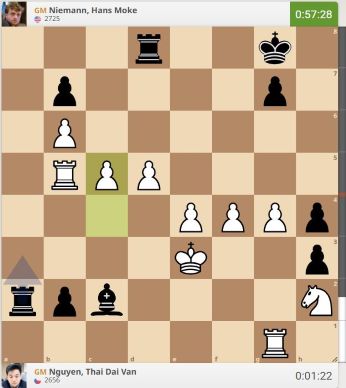 Тут уже началась цейтнотовая фаза. У него было меньше времени, но и у меня оно тоже сокращалось. Он был полностью сконцентрирован и очень хорошо защищался. То, что он не проиграл до 40-го хода, — это было безумие. После 40-го, думаю, у него были вполне реальные шансы на ничью.