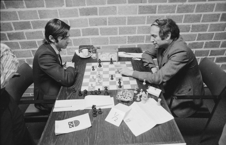 Всё хорошее когда-нибудь заканчивается. TataSteelChess 1976. Таль и Любо анализируют свою партию последнего тура. После этого — традиционный ужин с гороховым супом после церемонии закрытия — Таль и Дворецкий впереди.