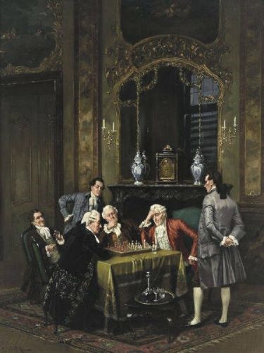 ''The game of chess'' (Карл Зеви, 1855-1929, австрийский портретист и пейзажист, работал в жанровом стиле, иллюстрировал книги)