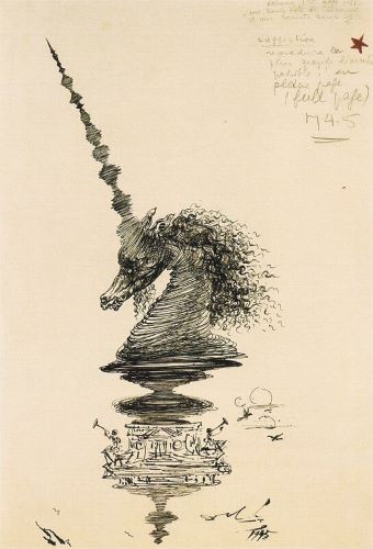 ''Ни с чем не сравнимая голова единорога. Иллюстрация из книги ''Жизнь Бенвенуто Челлини'', 1945 (Сальвадор Дали, 1904-1989, один из самых известных представителей сюрреализма)
