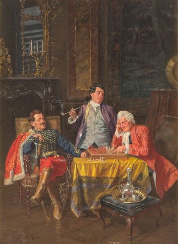 ''Playing chess'' (Карл Мария Зейппель, 1847-1913, немецкий художник-портретист, карикатурист и писатель)
