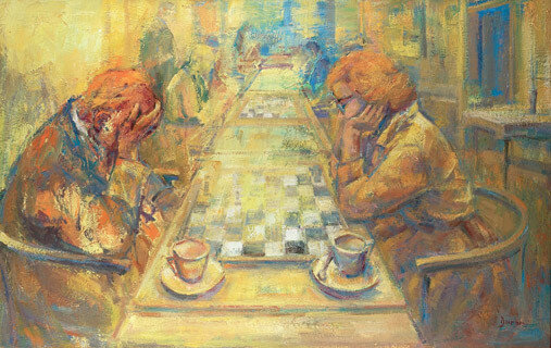 ''Шахматисты'' [Les joueurs d'echecs], 1982 (Филиппе Анселин [Philippe Ancellin], 1922–2010, французский художник, работавший в жанрах импрессионизма и экспрессионизма)
