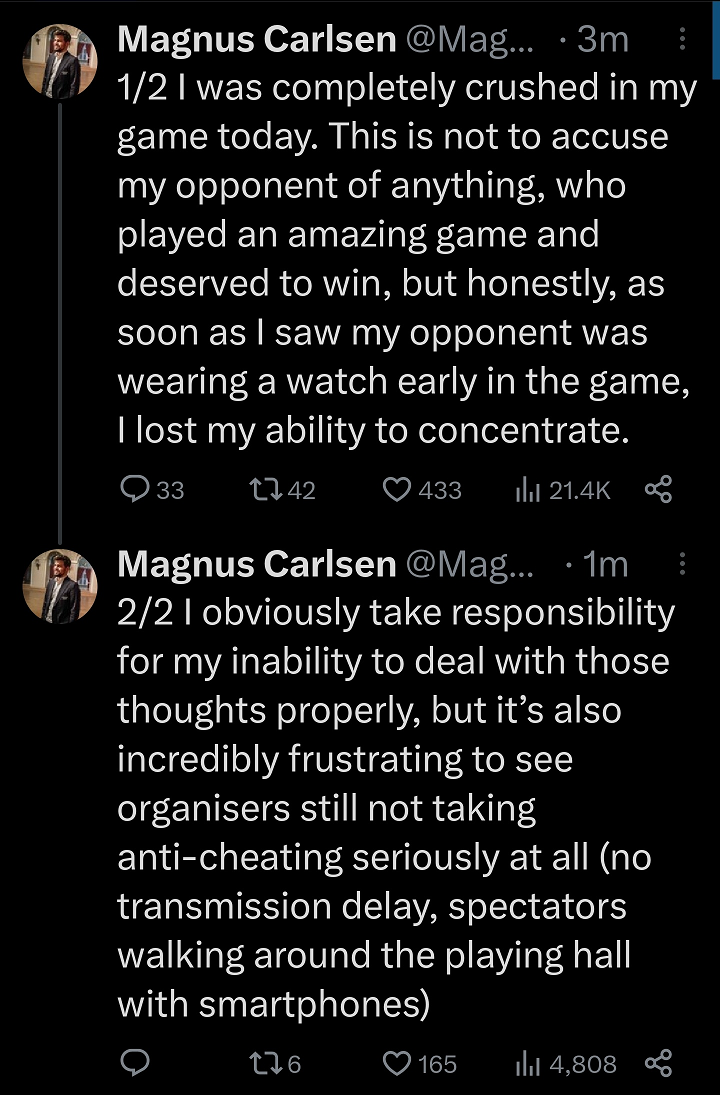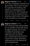 "Я никого не обвиняю, но", и указывать на что-то, чего не было В ПРОШЛОМ ЖЕ турнире, где ты участвовал, и где ты ни слова не сказал. И даже не во время него, но даже после тоже и слыхом не было слышно про недовольство отсутствием задержки.