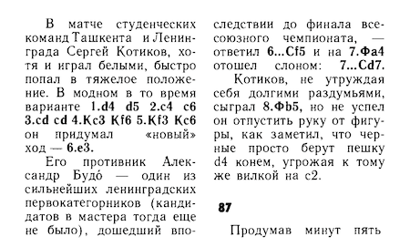 Именно так. ЕМНИП глава "Слишком силён для Котикова". Давно анализировал позицию, где три фигуры за ферзя и пешку, было интересно. Компа же не было. Кстати, эта как бы детская книга была весьма забавна.