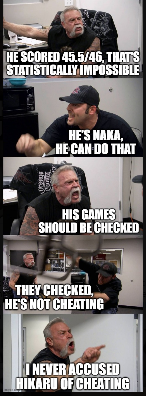 В читерство конкретно Накамуры (не разочек в год, а хотя бы относительно регулярное) мне не очень верится, да. Ну просто не могу себе вообразить: ЗАЧЕМ это ему?! При его-то процветании - ЗАЧЕМ ?! |