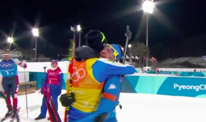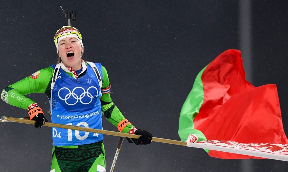 А Домрачева на финишной прямой даже успела схватить флаг Беларуси. Правда, недоброжелательный к Лукашенко корейский ветер тут же сорвал его с древка, с которым Дарья и финишировала, триумфально вернувшись на самую вершину после болезни и рождения ребёнка. Оскорблённый недоверием соотечественников супруг - Уле-Эйнар Бьерндален - на этот раз выполнял непривычную роль, аплодируя любимой с трибун.
